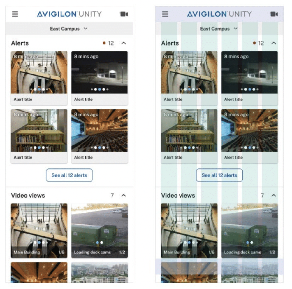 Recognizing the extensive product suite within Avigilon, each potentially requiring a unique grid layout, the design system incorporated a comprehensive grid system. This responsive grid spans desktop applications, web interfaces, and mobile experiences, ensuring optimal layouts across various screen sizes. This standardized approach streamlines the design process for Avigilon products, promoting visual consistency while empowering designers to focus on the specific functionalities of each product within the suite.