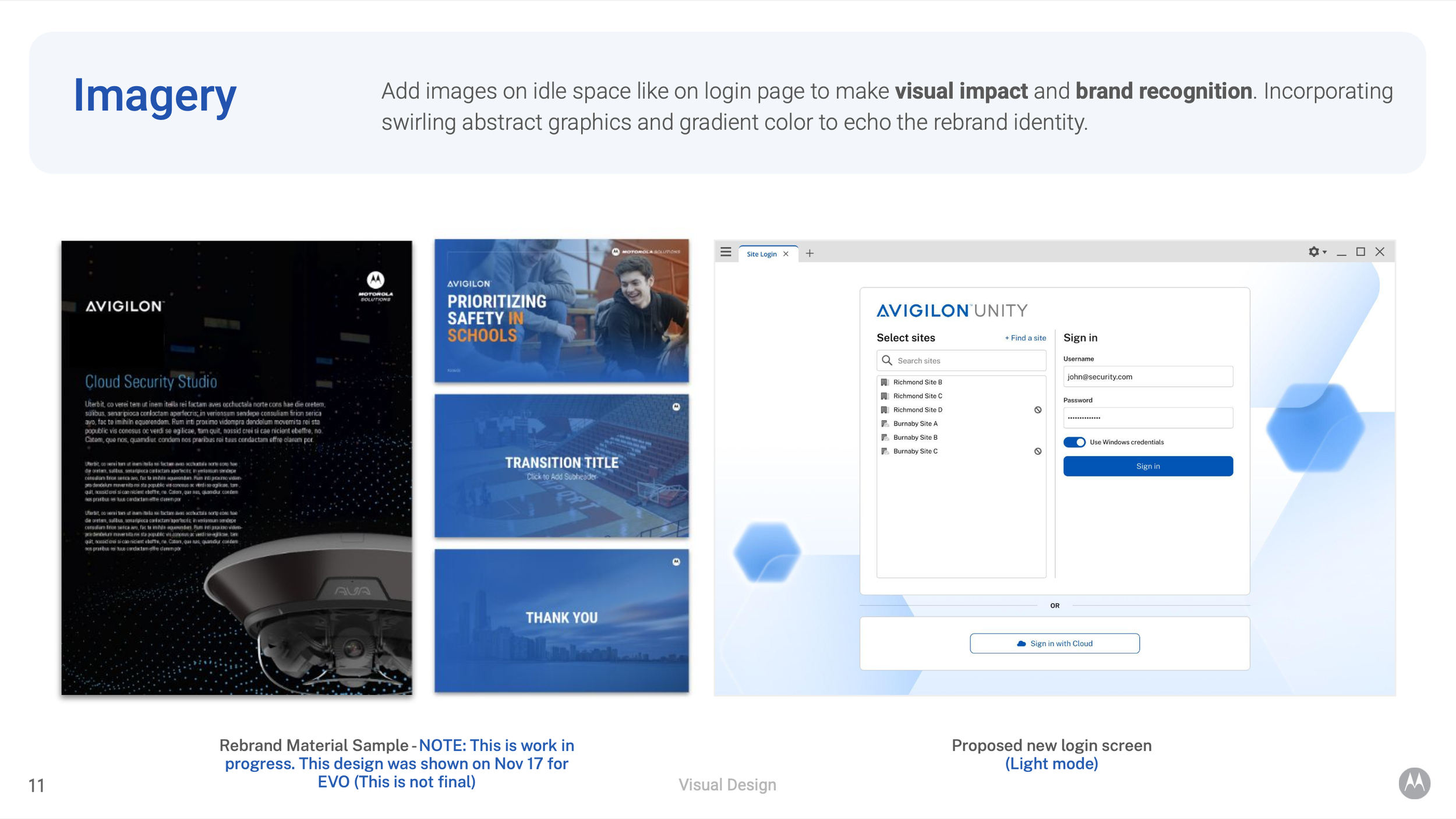 Motorola Solutions, owner of both Avigilon and Pelco security brands, along with other smaller brands, required a visual refresh to differentiate their product strategies. Avigilon would focus on comprehensive security solutions, while Pelco would specialise in hardware (cameras). Previously, the highly similar visual language made it difficult to distinguish between the brands. Additionally, recent logo refreshes for both brands presented a perfect opportunity to introduce a unified design system.